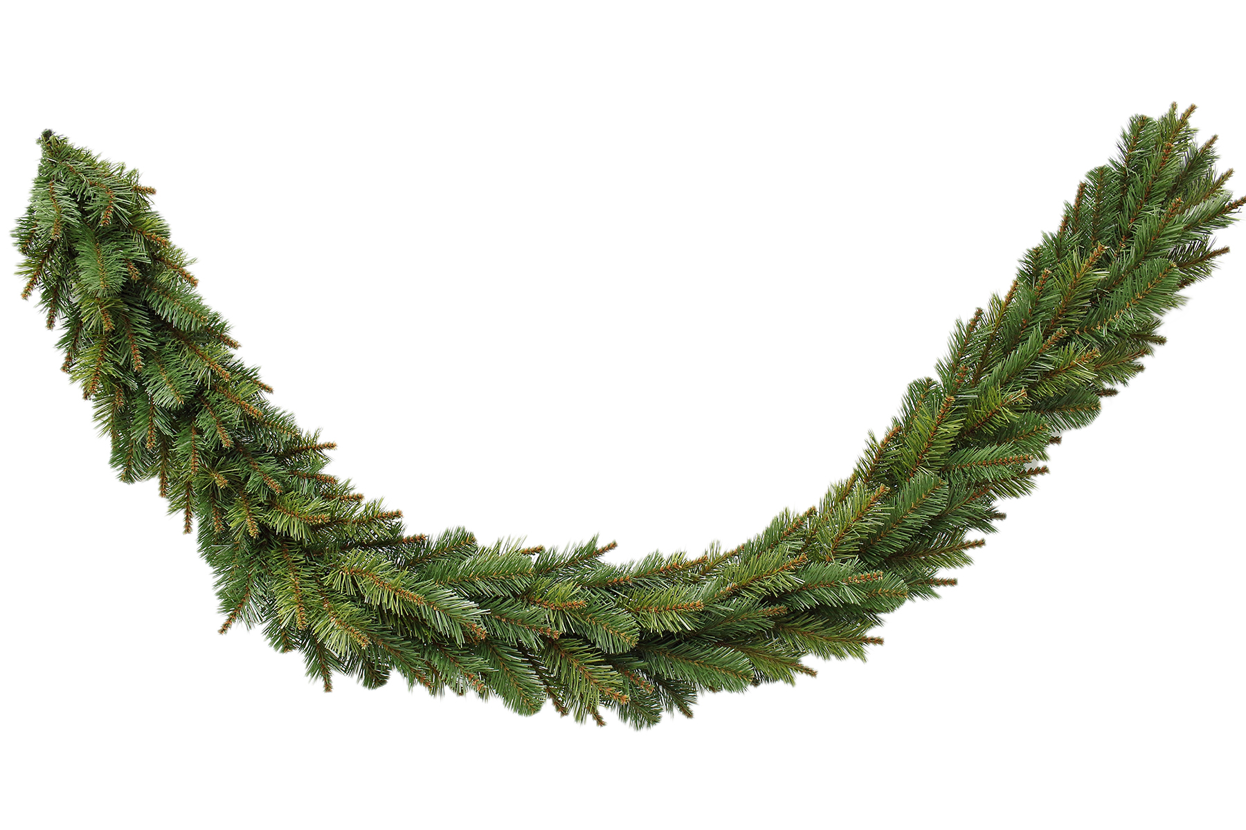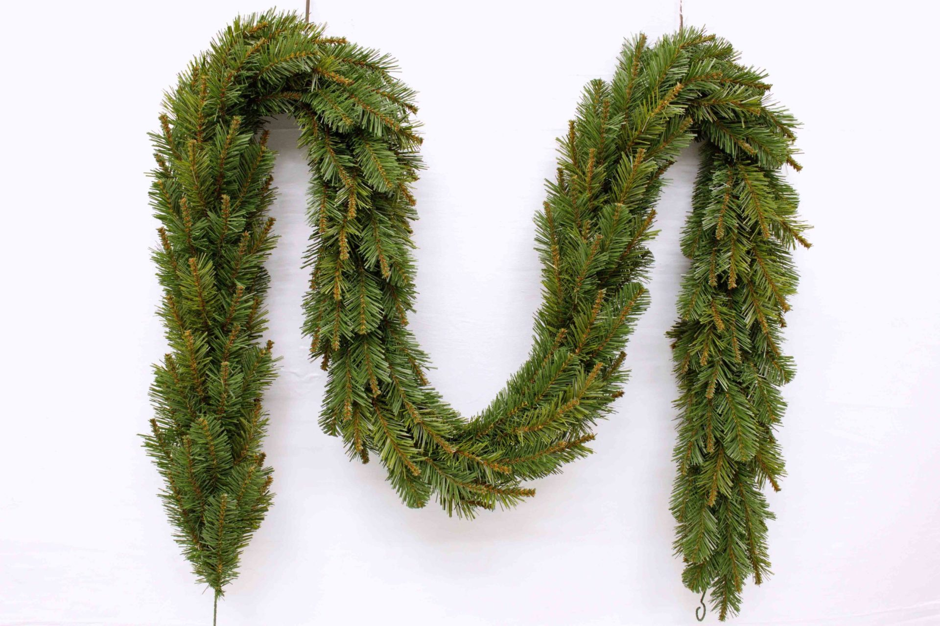 The Glendale Pine garland features 6cm wide soft tips-foliage with brown foliage (wooded) centred in the front tips extending out beyond the green foliage.