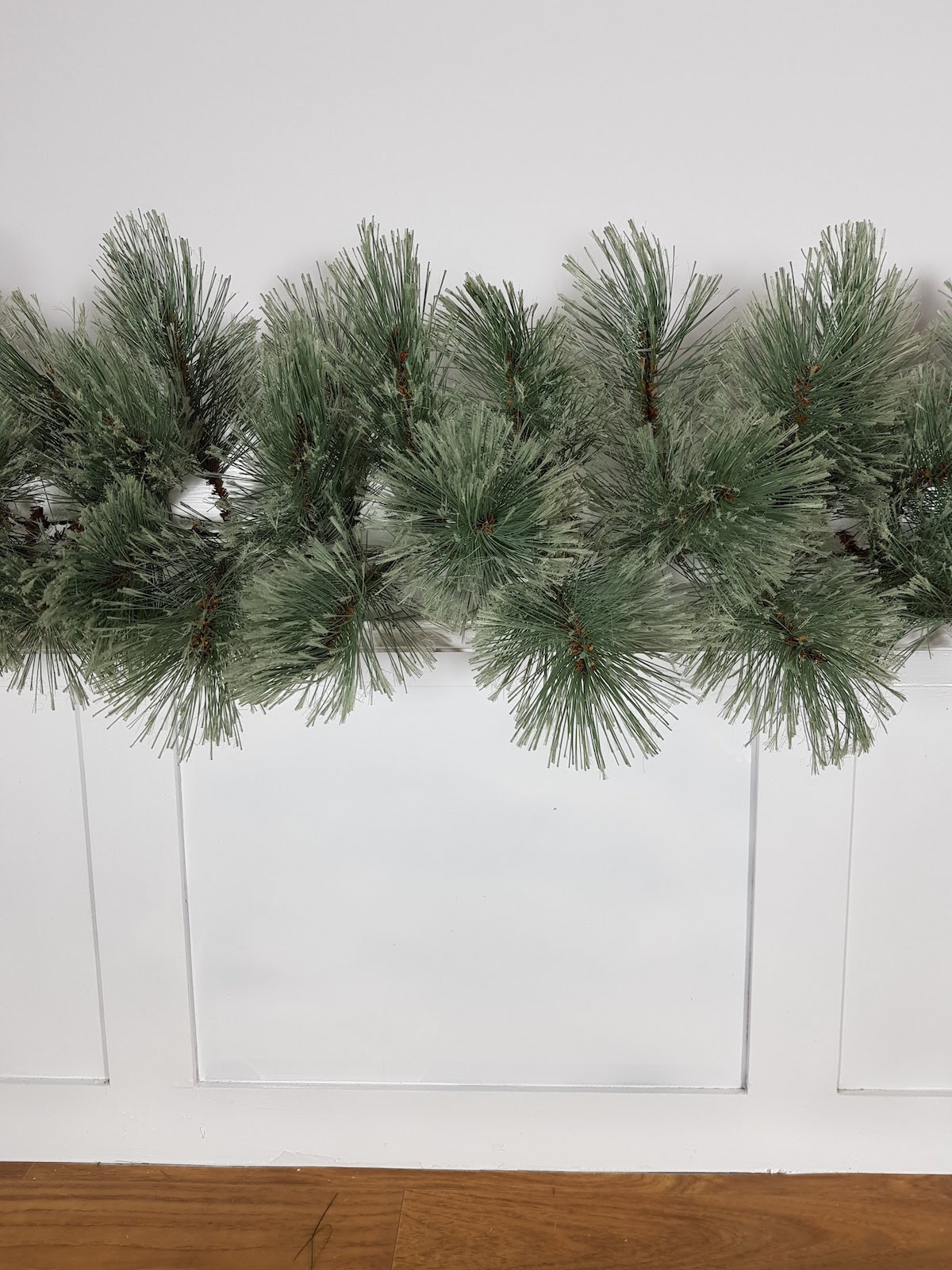 A uniquely designed Christmas garland with soft, fluffy, cashmere-like tips that appear white on each end. A 61cm diameter matching Wreath is available