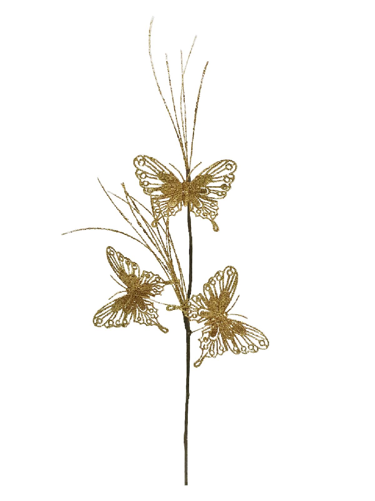 3 x Butterfly’s with gold glitter and gold glitter foliage on a long stem.