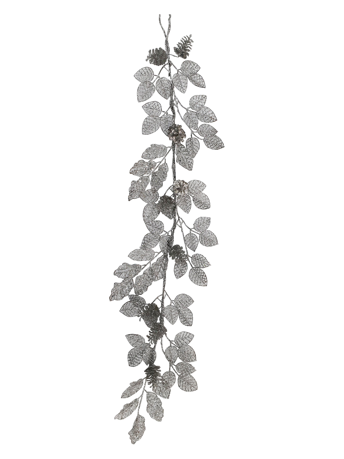 46 inch Mini Pine cone and leaf Garland Christmas Decoration 117cm Silver